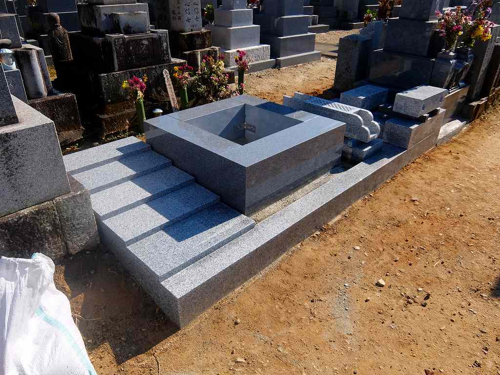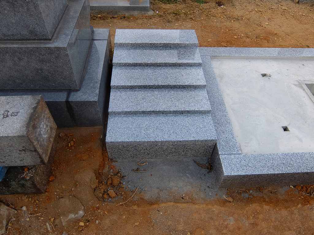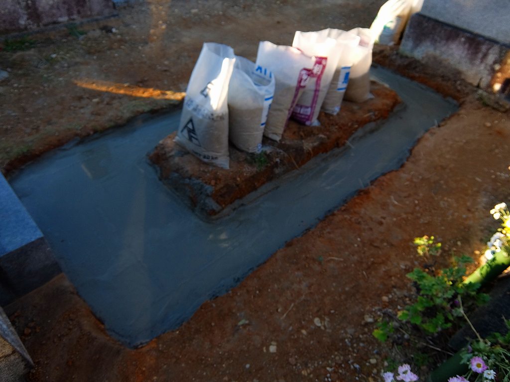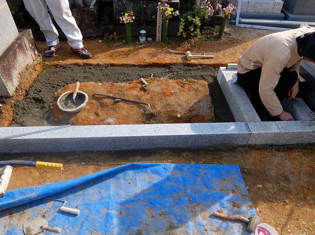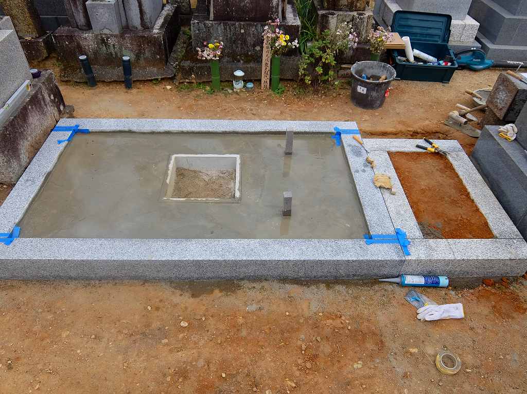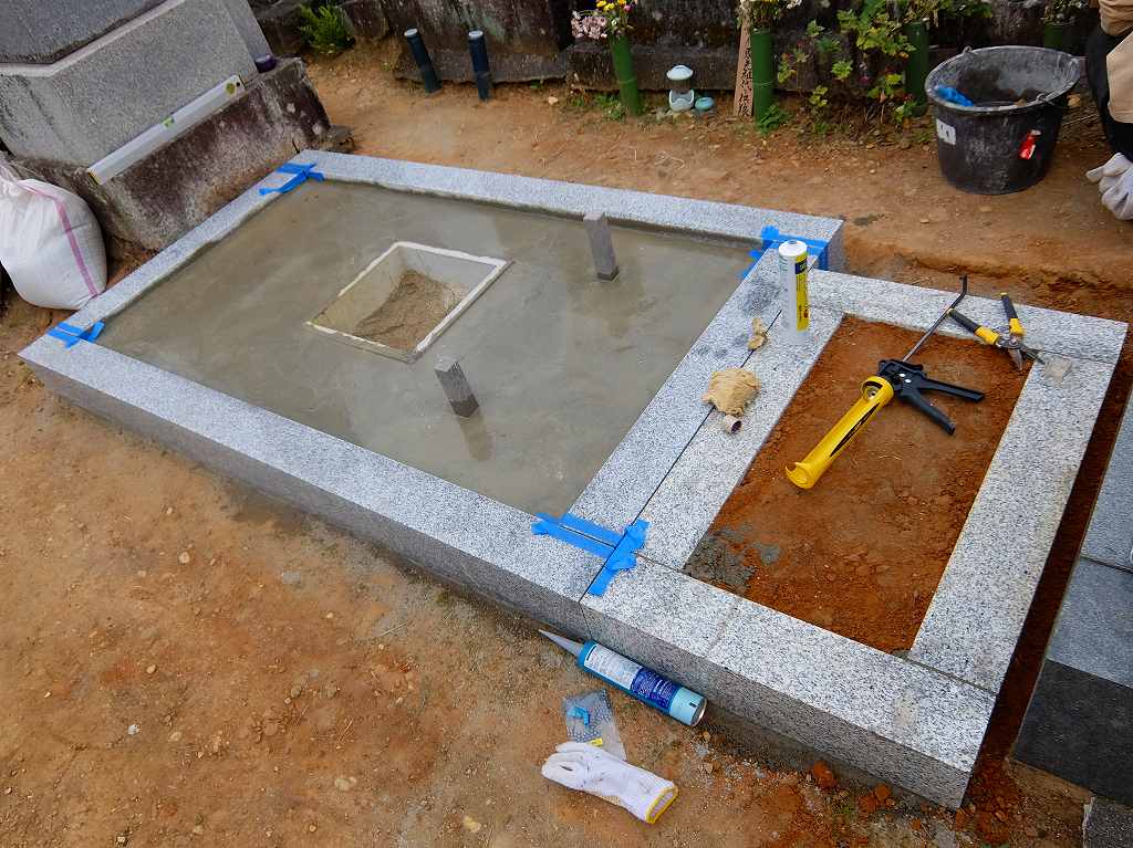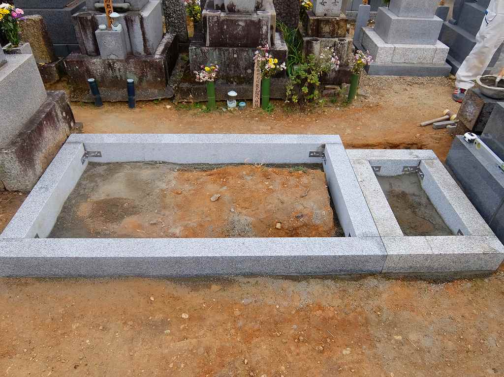 古い墓石を撤去して新たに墓石外画を設置していきます。