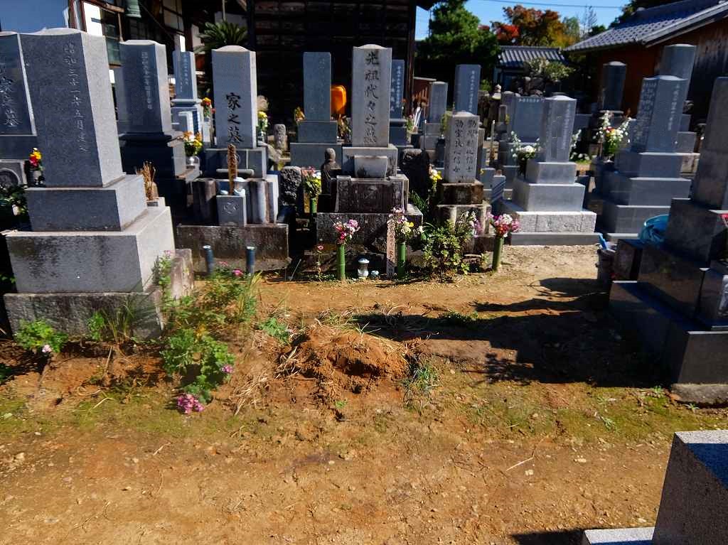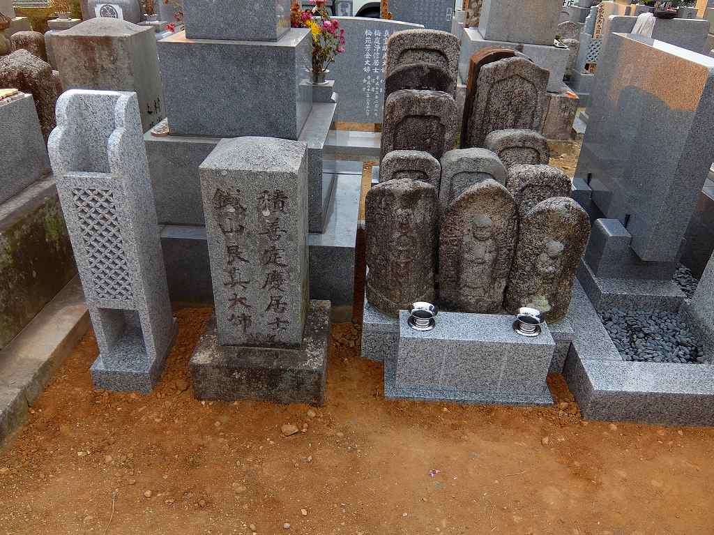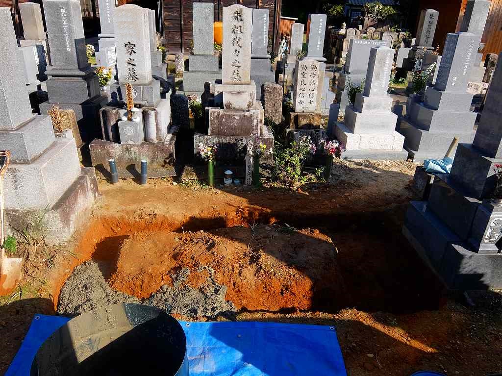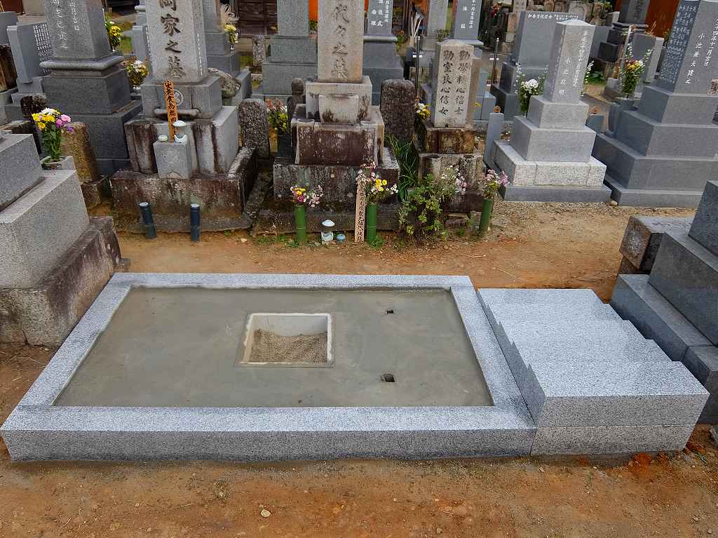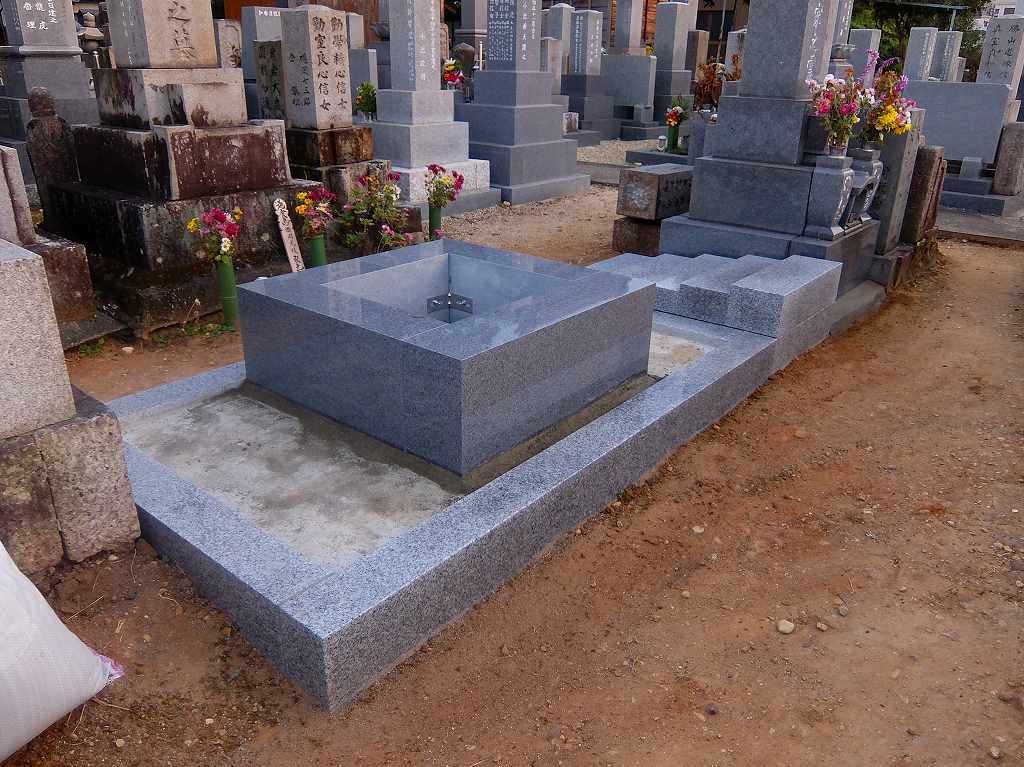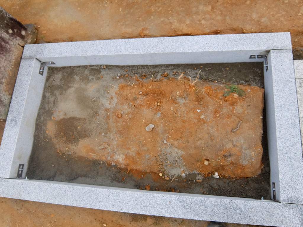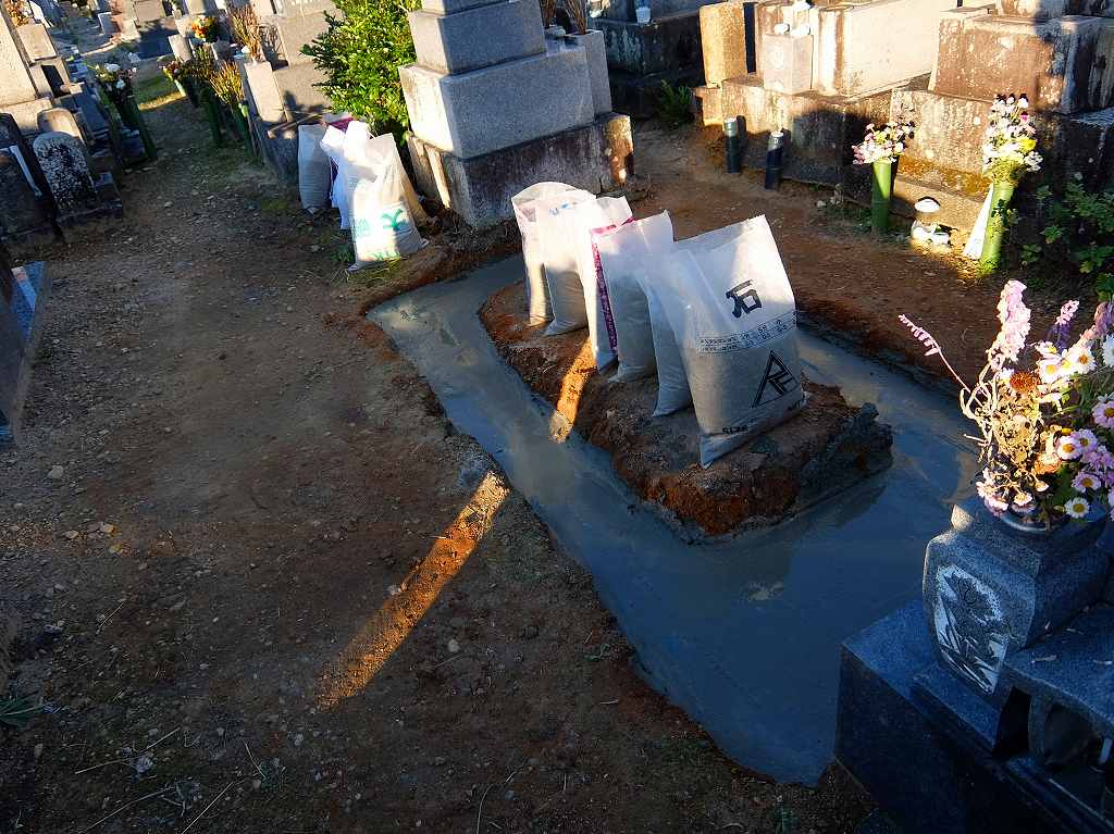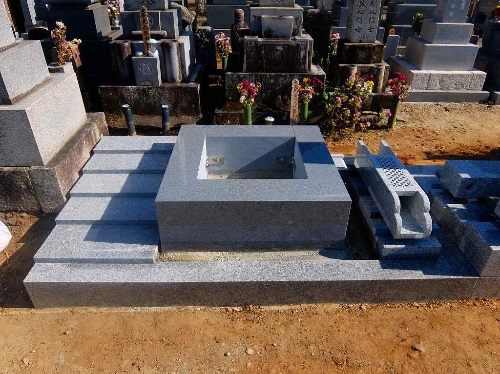 古い墓石を撤去して新たに墓石外画を設置していきます。
