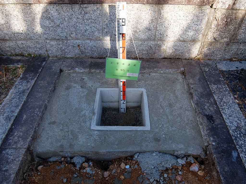 ▼竿石 草が生えないようにコンクリ打ち。