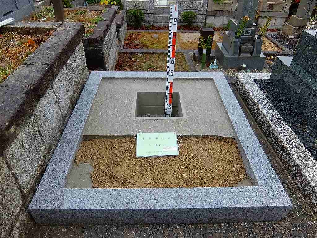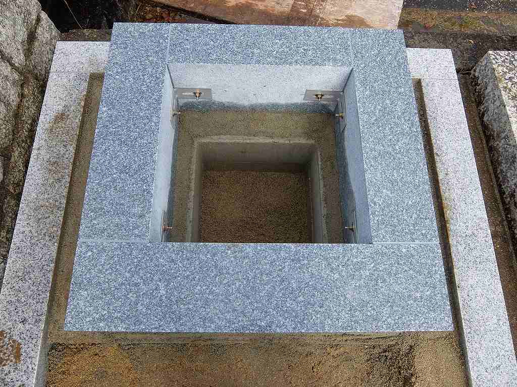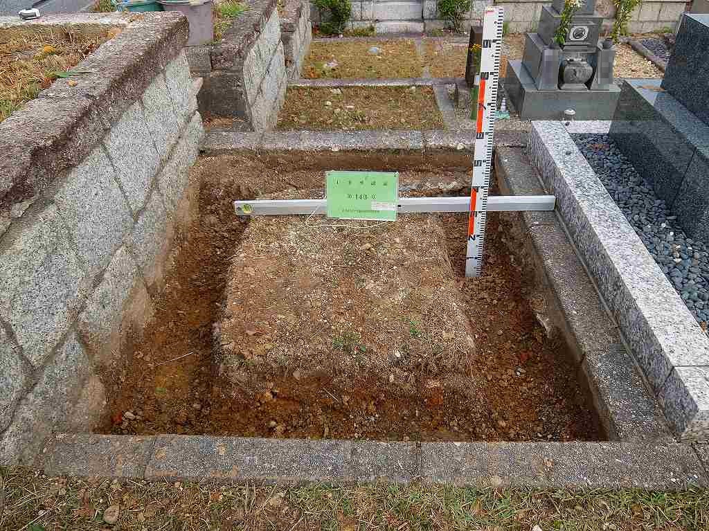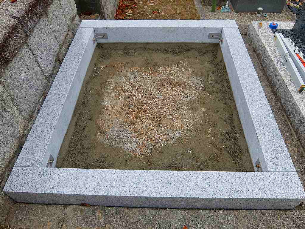 お骨の入るスペースを造ります。30人を超える埋葬が可能です。