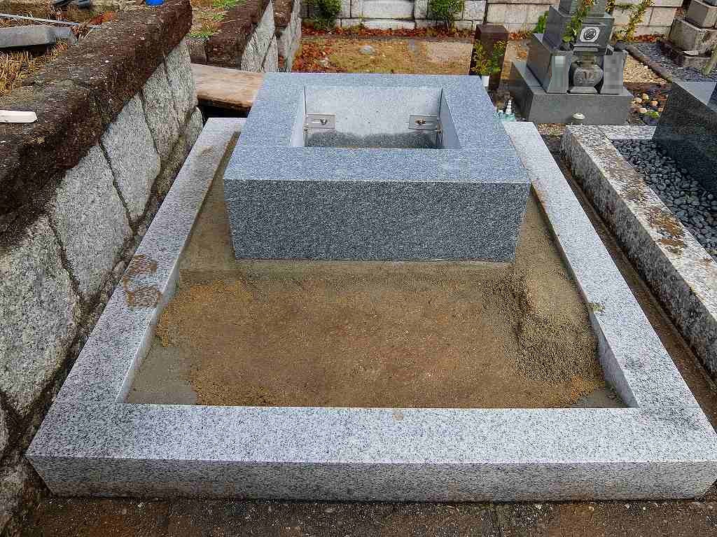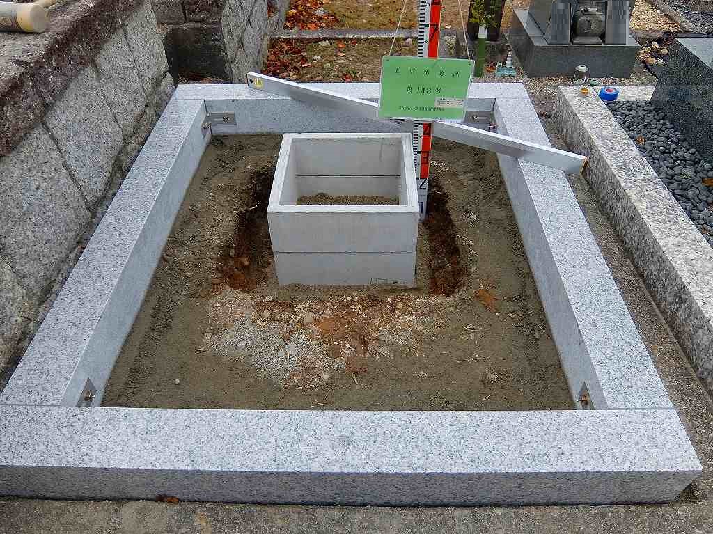 墓石の下の基礎を打ちます。どんなに頑丈な石でも傾いてしまったら意味がありません。