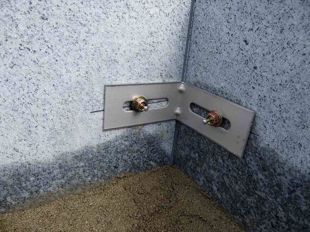 設置した四つ石が外れないよう耐震用金具を取り付けます。