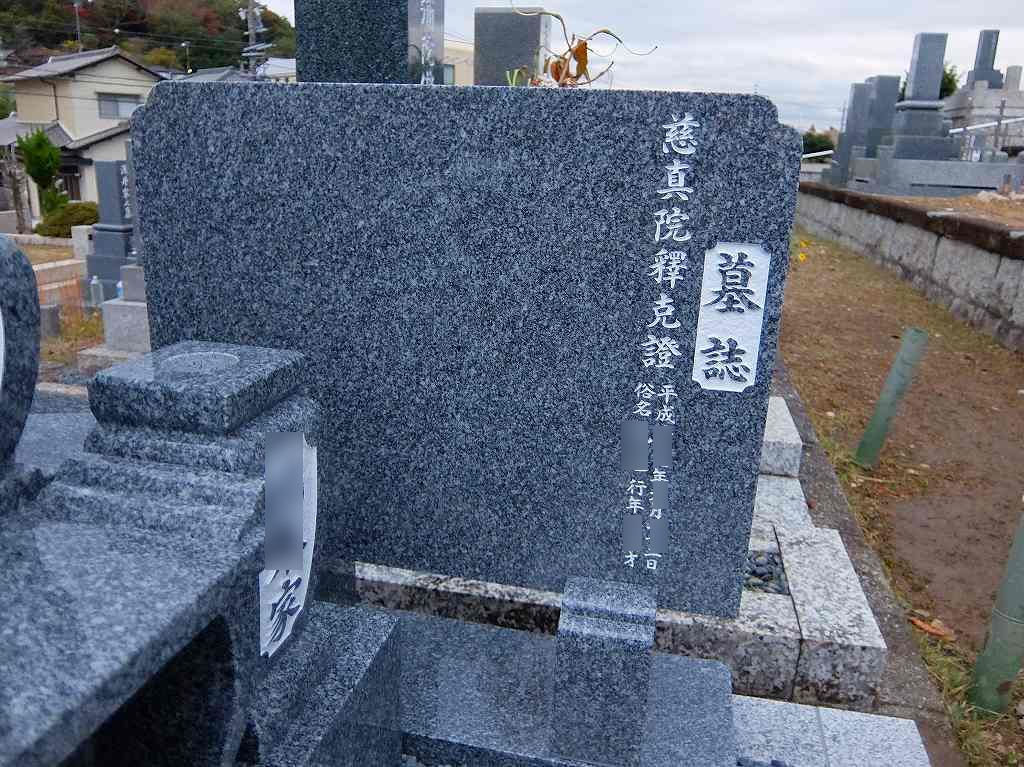 墓誌には戒名を刻みます。亡くなった年月日・お名前・歳。