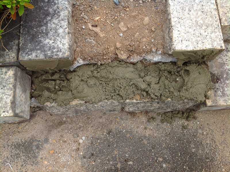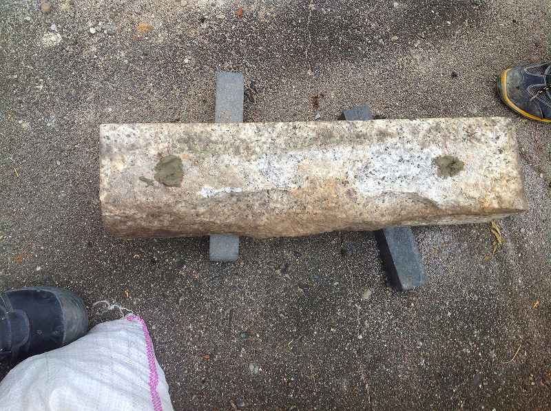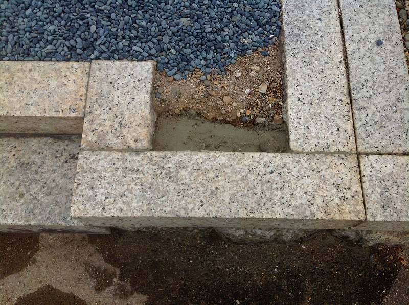 そして手前の外柵延石が外れていましたので(乗ると危ない)取れないように据付けさせて頂きました。