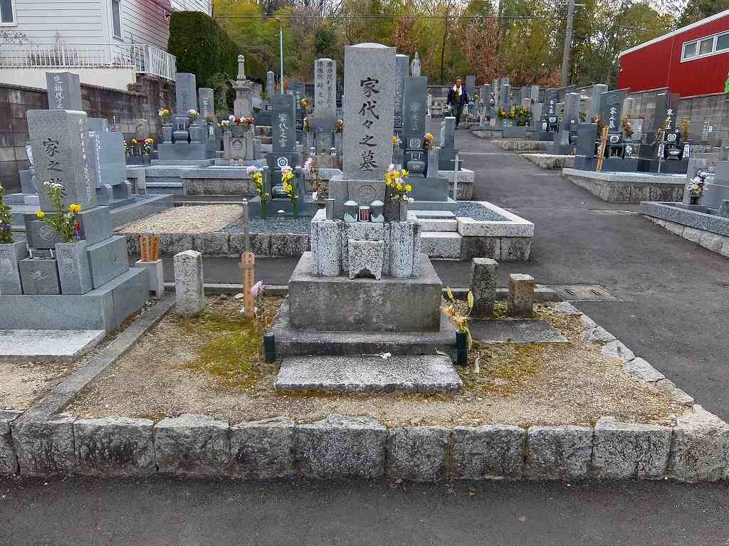小墓の撤去、墓誌の設置、墓石のクリーニングの工事です。