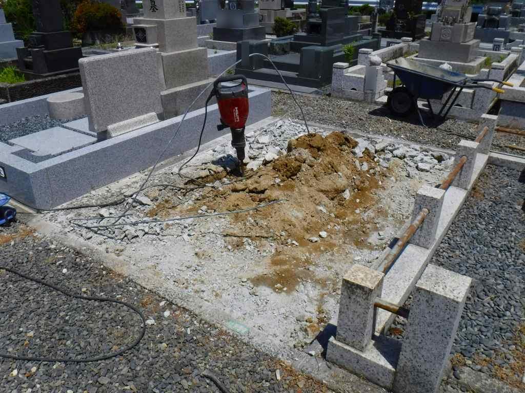 石材はもちろん、残土や基礎コンクリートなど、見えない部分の廃材も撤去の範囲です。