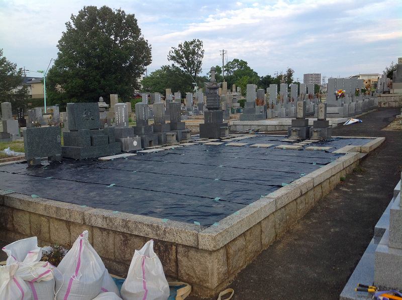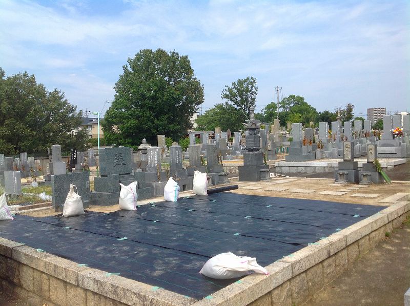 雑草対策 防草シート・豆砂利追加 名古屋市寺院墓地