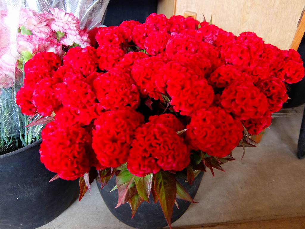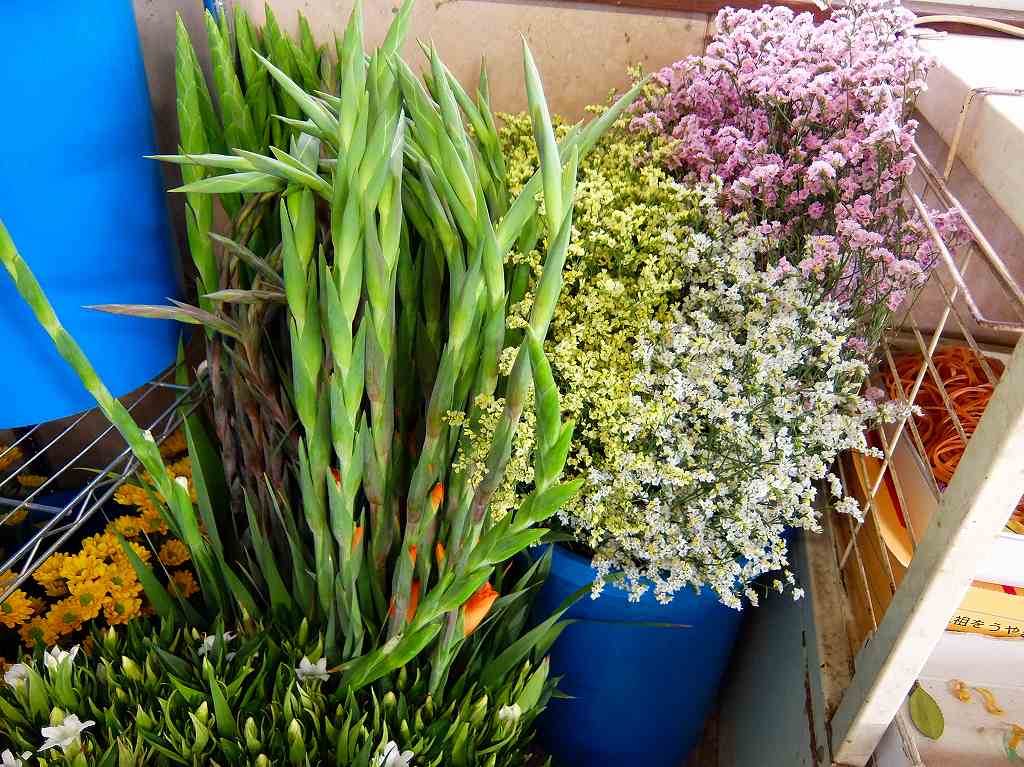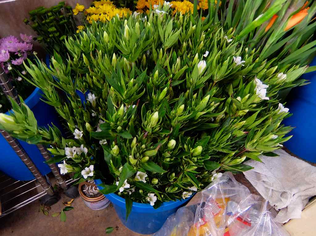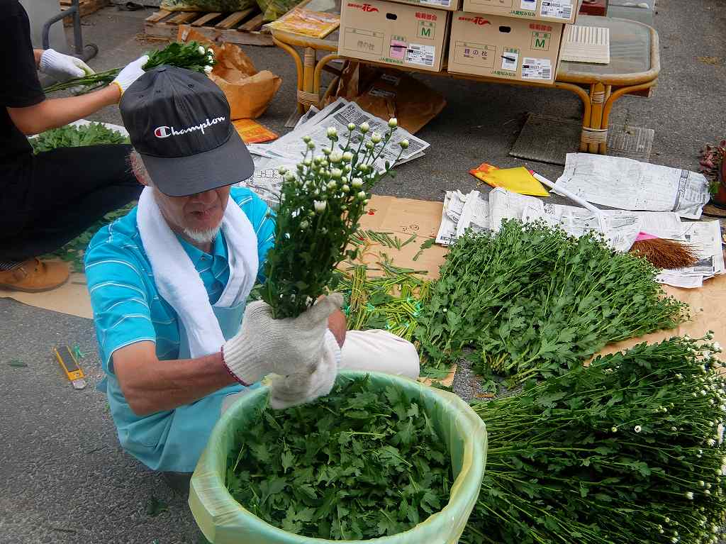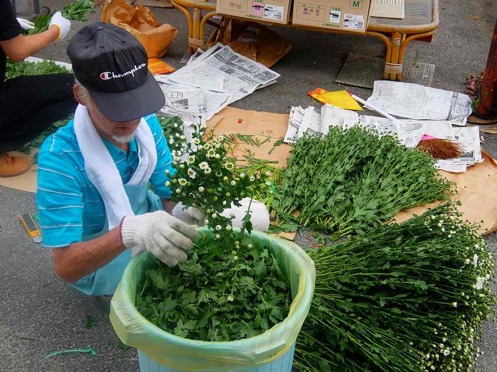 秋のお彼岸の墓花販売の準備をしています。