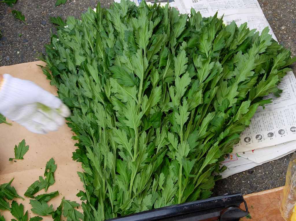 ▼菊の葉っぱ掃除。