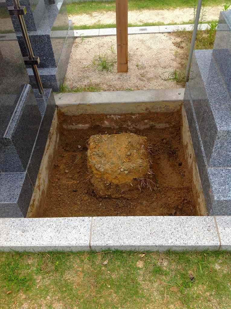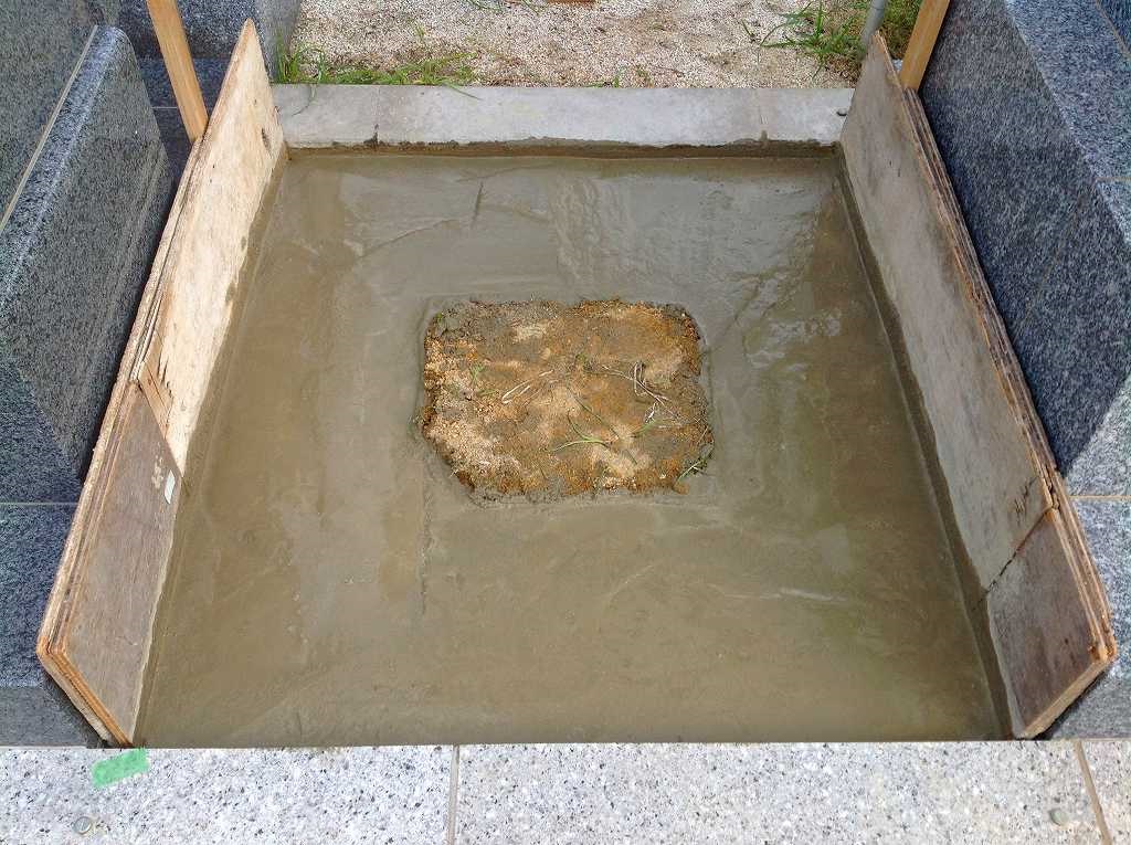 ▲間口87㎝、奥行97㎝と小さい区画ですが墓誌の取り付けも可能です。