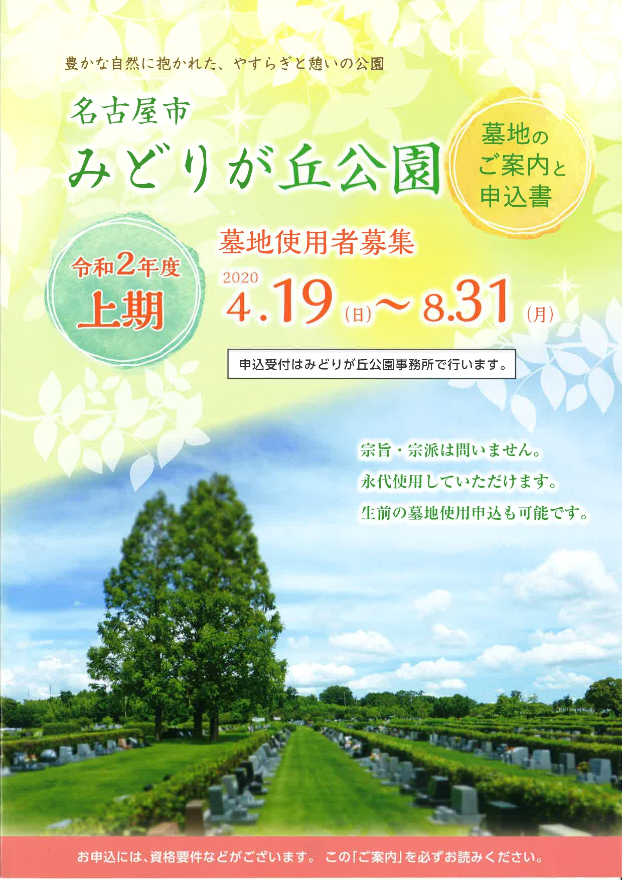 名古屋市みどりが丘公園にて上期使用者募集のお知らせ。