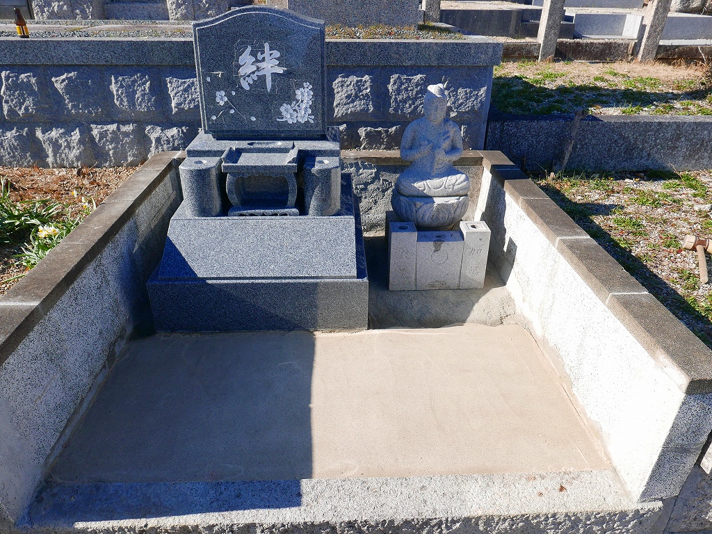 八事霊園にてお墓のリフォーム工事の完成です。外柵に加え、既存の石仏もクリーニングさせて頂きました。お施主様にも喜んで頂き誠に感謝です。