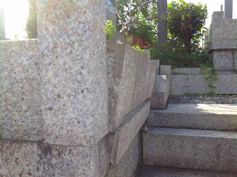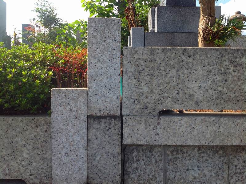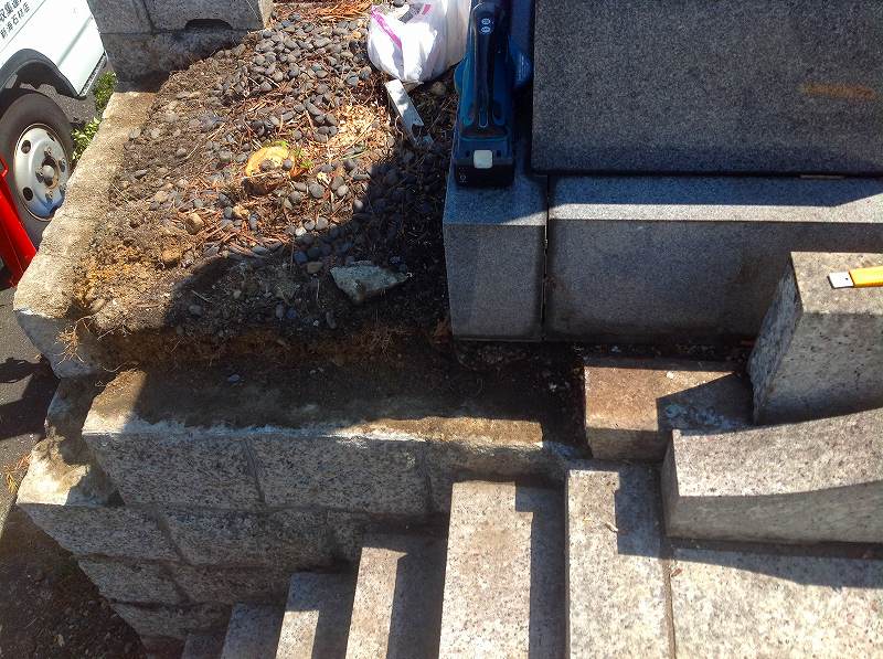 ▼工事前。外柵の石が開いており、落ちる寸前なのでかなり危険です。
