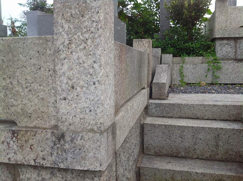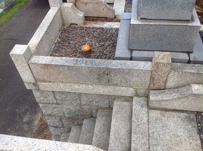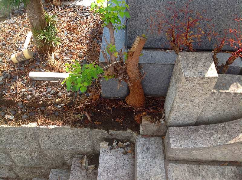 墓地内に生えた樹木によって押し出された外柵の修理です。