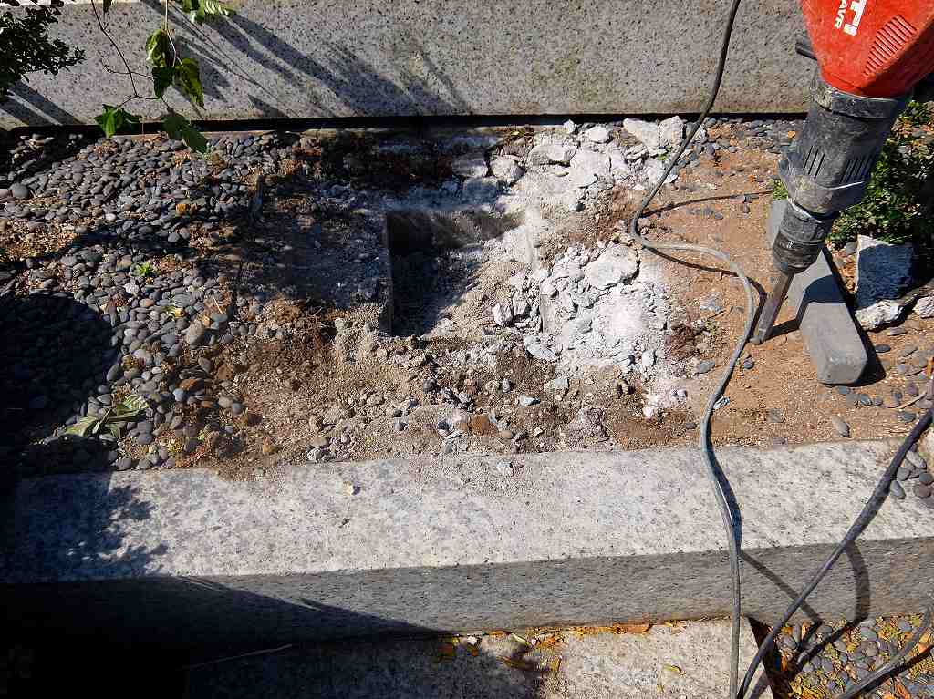 ▼墓石をどかして基礎を壊していきます。