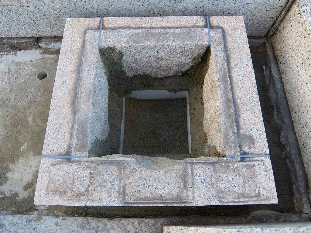 もともとあった9寸角の墓石を据直して新たに墓石を設置します。